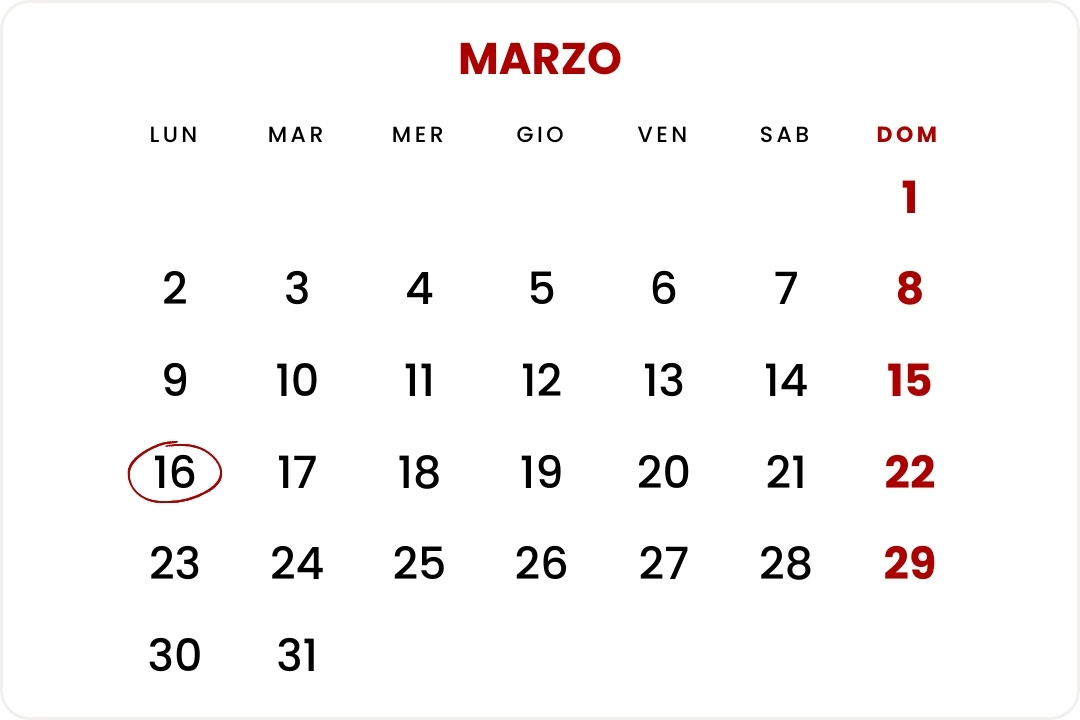 desideriamo offrirvi un promemoria delle principali scadenze di marzo, per supportarvi nella gestione delle attività e garantirvi un’organizzazione puntuale.